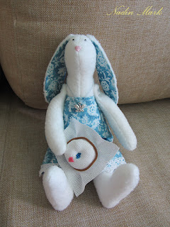 Еще параллельно проверяла на себе распространенное мнение, что нужно шить несколько вещей одновременно. Шила 2-х зайцев сразу, второй лежит набитый и сшитый, но голенький, хотя образ уже придумала. Сделала вывод, что шить 2-х сразу быстрее, чем по-отдельности, но как-то тяжелее :( Не уверена, что буду в дальнейшем делать так.